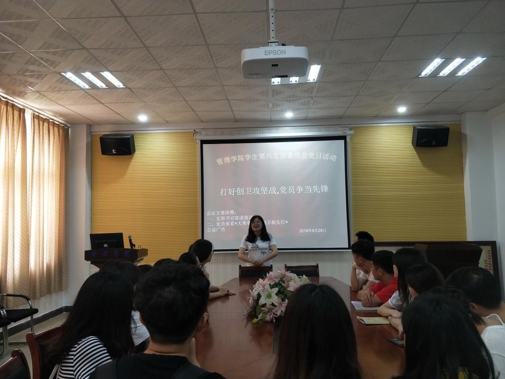 2019年5月28日下午,韦德1946体育官方入口管理公司员工第六支部党日活动在F104顺利召开,活动的主要是关于创建卫生城市,打好创卫攻坚战,发挥好党员模范带头作用,支部书记周艺老师主持本次活动,全体党员参加。