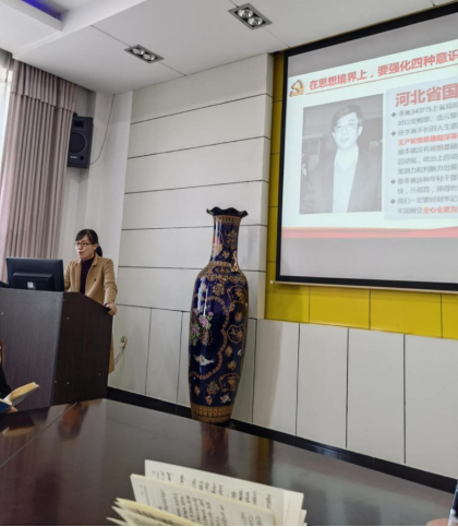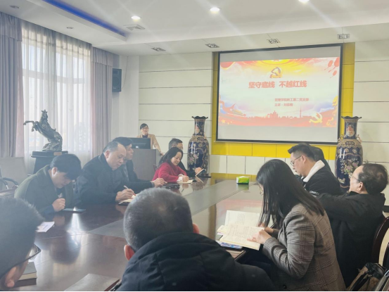 为有效落实公司开展的廉政宣传教育月活动,进一步增强教师党员干部党性观念,警示教育党员干部严守底线,不越红线,2021年11月23日下午17:00,管理公司教工第二党支部在G509会议室开展以“坚守底线 不越红线”为主题的廉政党课学习。本次党课由支部书记刘喜梅同志主讲,支部19名党员认真参加了本次党课学习。