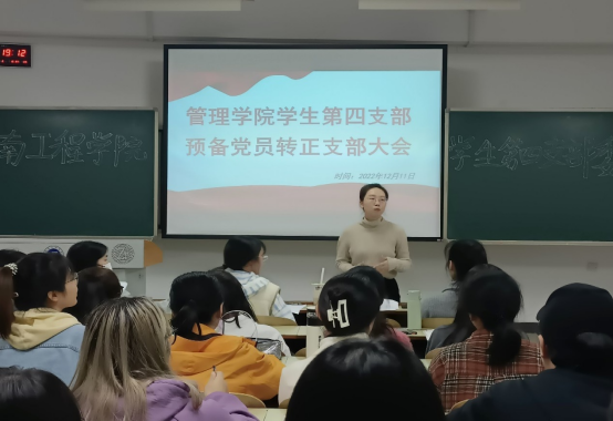 11月25日,管理公司员工第四支部在C-203召开预备党员转正大会,会议由支部书记陈景楠主持,支部全体党员参会。