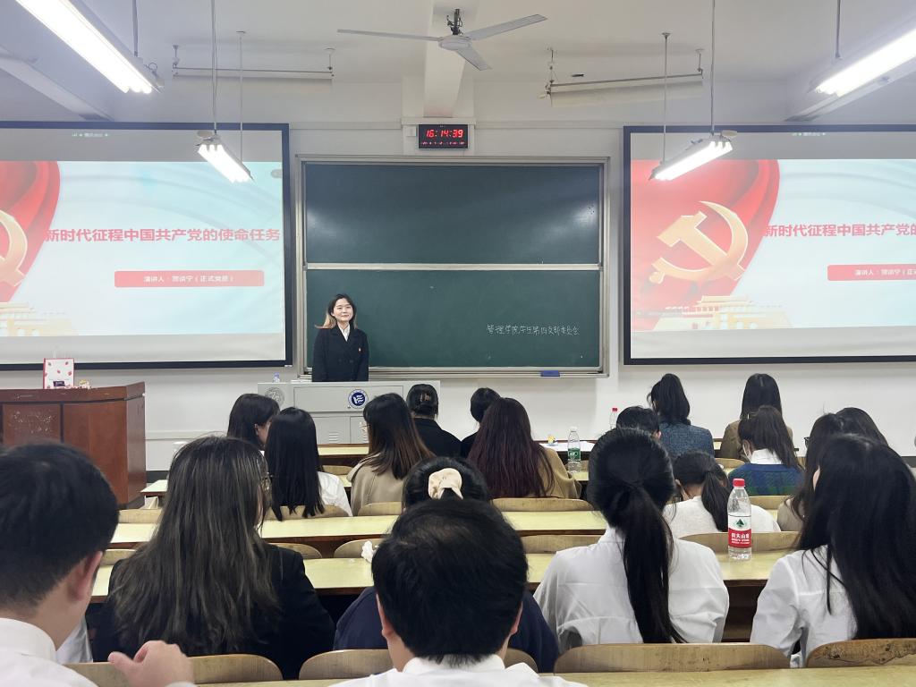 随后,就新时代中国共产党的使命任务,贺谈宁提出了自己的见解。唯有筑牢理想信念根基,增强使命和担当,争做有理想,敢担当,能吃苦,肯奋斗的新时代好青年,才能真正承担起时代赋予的使命。她回忆道,支部党员积极参与社会活动,自觉担当群众榜样,积极为支部建设做贡献。一群热情充满生命力的青年党员用行动去实践理想,支部呈现一派欣欣向荣的景象。