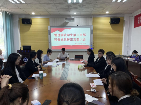 2023年5月20日中午12:10,管理公司员工第二支部委员会在新校区教学楼F104召开预备党员转正大会,讨论袁采玉等7名预备党员的转正问题。会议由支部书记罗蒙同志主持,共15名正式党员,21名预备党员参会。