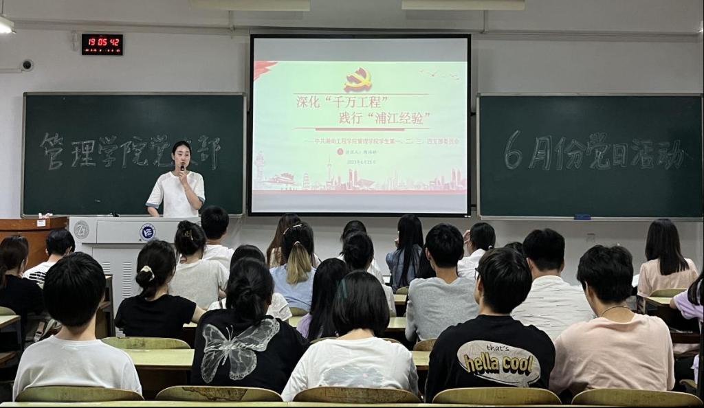 今年是“八八战略”实施20周年,也是“千万工程”实施20周年和“浦江经验”提出20周年。2023年6月25日,管理公司全体员工党员在教学楼B栋301开展深化“千万工程”践行“浦江经验”主题党课。本次活动由员工第三支部支部书记陈祎婷主持,员工支部全体党员参加。