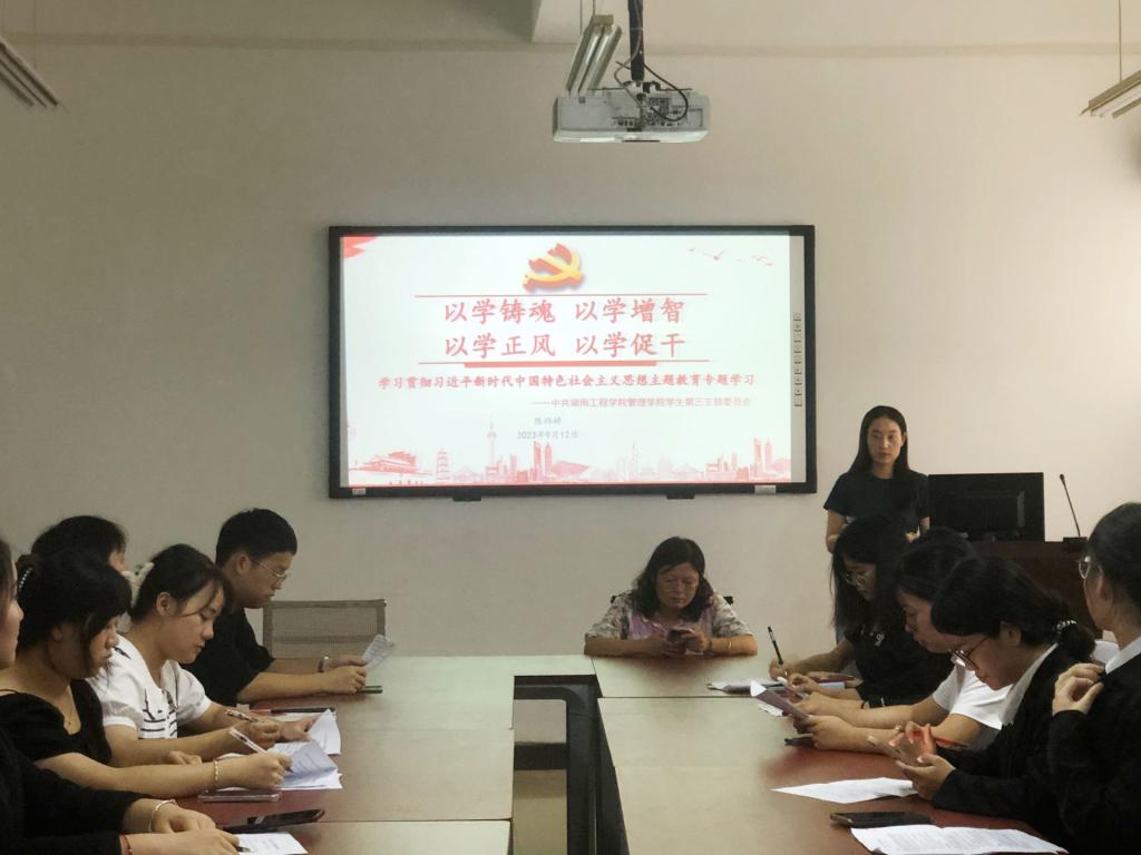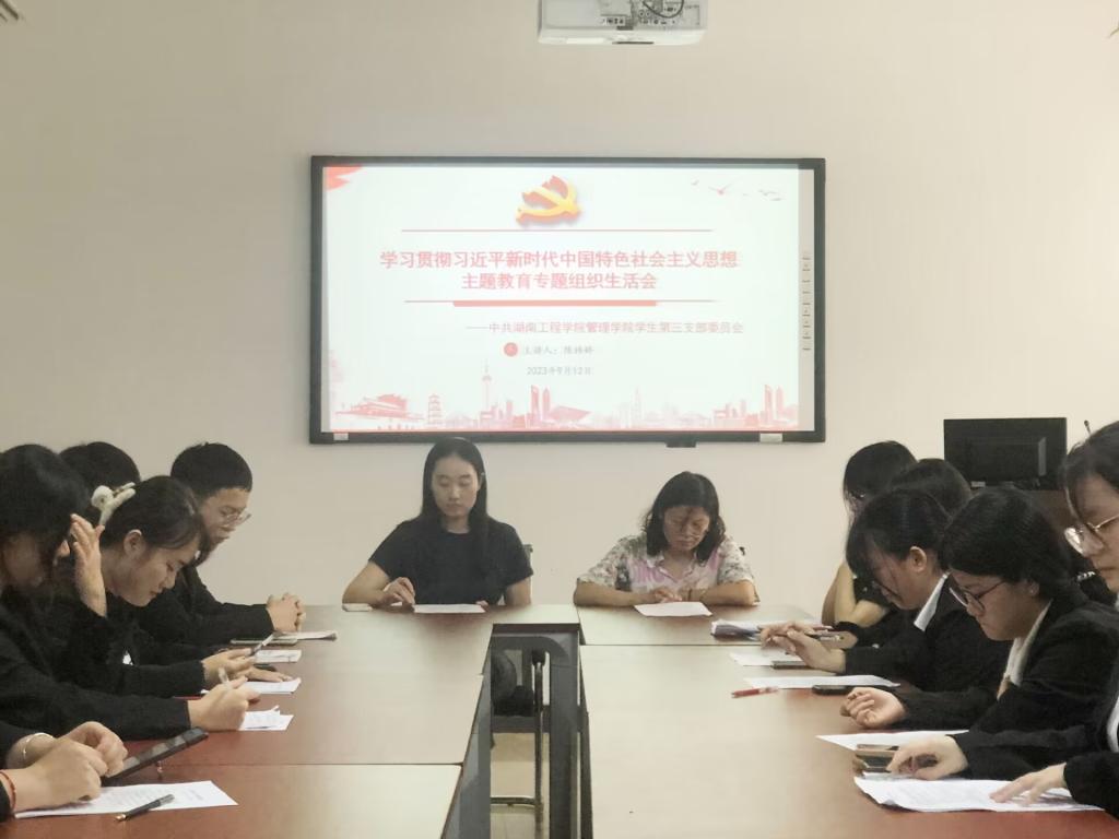 2023年9月12日,管理公司员工第三党支部在主校区F103召开学习贯彻习近平新时代中国特色社会主义思想主题教育专题组织生活会。本次会议由支部书记陈祎婷主持,管理公司党委委员单艳艳到会指导会议,支部全体党员参加。