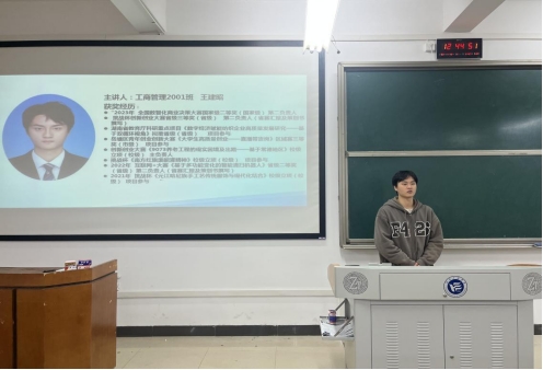紧接着,陈祎婷邀请支部创新创业竞赛优秀党员代表王建昭、潘蕾开展经验分享会。他们从“如何组建好的竞赛团队”、“如何选择当前竞赛热点主题”、“如何抓取项目重点”、“如何进行实证分析”等方面进行讲解,同时结合自身实战经验,提醒同学们团队分工合作的重要性,并鼓励同学们积极参赛,在学中做,在做中学,提升自身创新创业能力。