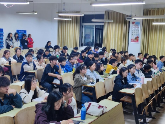 讲座中,谭浪回忆自己在大学的学习生活情况,分享从职场小白到独当一面的经历,畅谈了创业的经验与心得,抓住商机,不言放弃。互动环节中,同学们踊跃提问,谭浪均一一答疑解惑。谭浪真实、多元、起伏的创业经历一下就拉近了与同学们的距离,其中展现的创新思维和创业素养更是给同学们带来了很大的启发和激励。