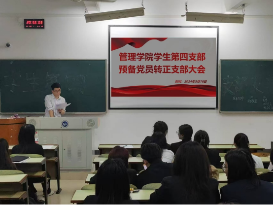 为进一步加强党员队伍建设,做好发展党员工作,管理公司员工第四支部于2024年5月16日晚在B406召开预备党员转正大会,本次会议就徐诚等9名预备党员的转正问题进行讨论和决议。会议由支部书记罗蒙主持,支部全体党员参会。