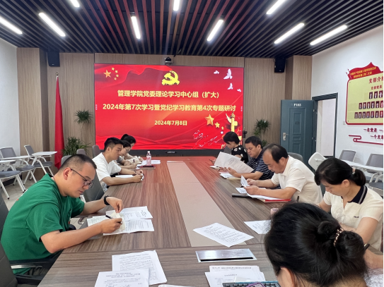 7月8日上午,管理公司党委理论学习中心组(扩大)在F103会议室举行2024年第七次学习暨党纪学习教育第4次专题研讨。公司党委书记文山东主持学习,公司党委理论学习中心组成员、各支部书记参加学习。