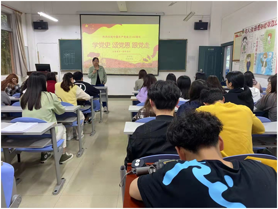 为进一步传承红色基因,引导广老员工党员筑牢信仰之基,补足精神之钙,5月19日下午三点,经济公司在主教学楼G113开展“学党史、颂党恩、跟党走”专题党课学习。员工党支部书记李军花讲授党课。全体员工党员参加了党课学习。
