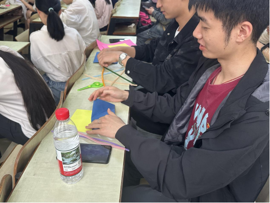 活动中,员工党员通过“留言寄情”“扭棒制作”“剪纸传梦”三大环节深化对教育公平与感恩回馈的理解。在“留言寄情”环节,参加活动的党员和青年员工结合自身受助经历,深刻阐述资助政策对推动教育公平的重要意义,抒发对社会的感恩之情与回馈之志,员工党员梁宇航写道:“资助政策不仅是雪中送炭,更让我明白党员应成为传递温暖的桥梁。”随后,在工作人员的指导下,党员们分组创作主题手工艺品,用扭棒编织象征“助学纽带”的立体造型,将感恩之情融入作品。各小组在制作过程中相互协作,分享创作理念,现场氛围热烈。