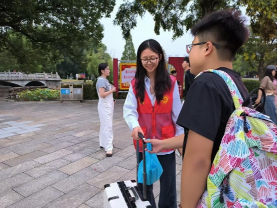 活动中,身着红马甲的“党员志愿者”的身影成为校园里最亮眼的风景线。在报到点,他们耐心为新生及家长讲解报到流程,协助完成信息登记、材料提交等手续,避免新生因流程不熟而奔波;在校园主干道,他们主动接过新生手中的行李箱,引导新生前往宿舍,汗水浸湿了马甲却始终保持微笑;在宿舍楼下,他们细致解答新生关于住宿安排、食堂分布、专业课程等疑问,用自己的亲身经历为新生提供实用建议,帮助新生快速熟悉校园环境、缓解陌生感。