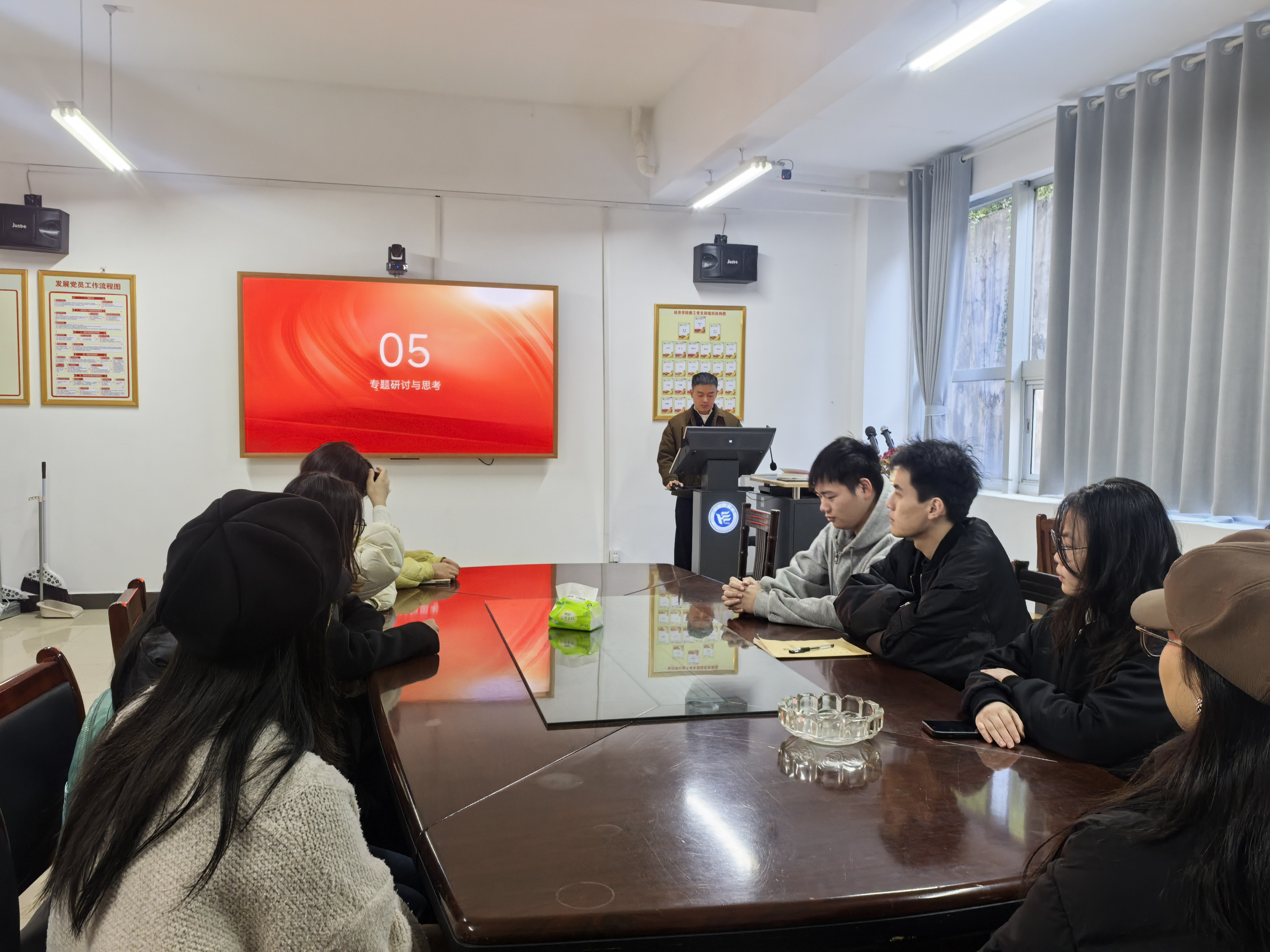 党课环节,谭浩博围绕“深入解读党的二十届四中全会精神”主题,结合国家发展战略与支部工作实际,从全会召开的时代背景、核心要义和实践要求三个维度开展专题党课。随后,全体党员集中观看中共中央新闻发布会关于党的二十届四中全会精神的解读视频,并学习中央层面整治形式主义为基层减负专项工作机制办公室、中央纪委办公厅公开通报的2起整治形式主义为基层减负典型问题,通过正面引领深化认知、反面警示筑牢防线。