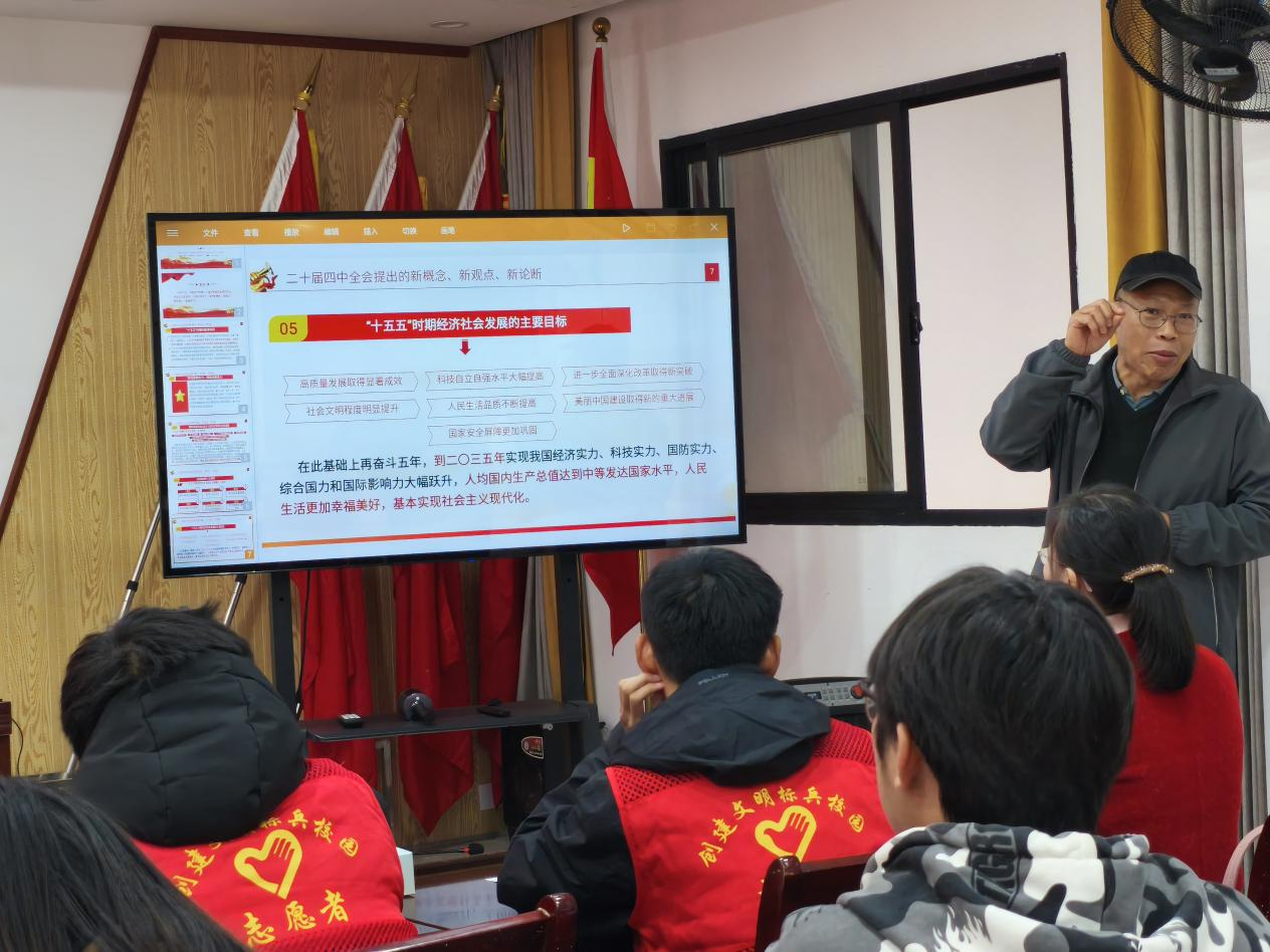 支部副书记米振华聚焦“党的二十届四中全会提出的新概念、新观点、新论断”,对“十五五”时期经济社会发展的主要目标、12项重大部署等重要内容以及全会提出的一系列创新理念和战略论断进行了详细阐释,以生动鲜活的讲解帮助现场群众准确把握全会精神的核心要义和实践要求。