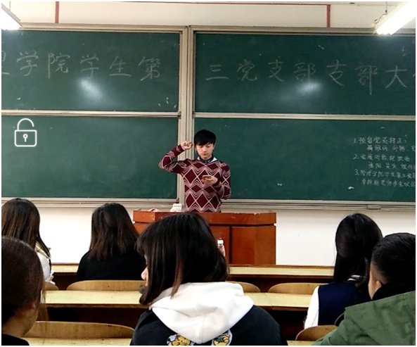 会议以讨论谢鑫杰、吴秀等四名党员发展对象转为预备党员为主要内容,会上严格按照发展党员的程序严格进行。各位发展对象依次向党支部汇报了各自一年的考察期内的学习、工作、生活、思想等情况。首先发展对象谢鑫杰同学上台分析了自己一年来生活中、学习中、思想上的感悟,透彻的分析了自己的优缺点,并表示优点会继续发扬缺点会及时改正。其培养人详细的介绍了该同学的在校表现,以及身边的群众代表也详细的介绍了该同学在校表现,党内同志人认真倾听,并给予了诚恳的建议。接下来吴秀等同学也阐述自己一年来生活中、学习上、思想上的感悟,其培养人详细的介绍了该同学的在校表现,以及身边的群众代表也详细的介绍了该同学在校表现,党内同志人认真倾听,并给予了诚恳的建议。