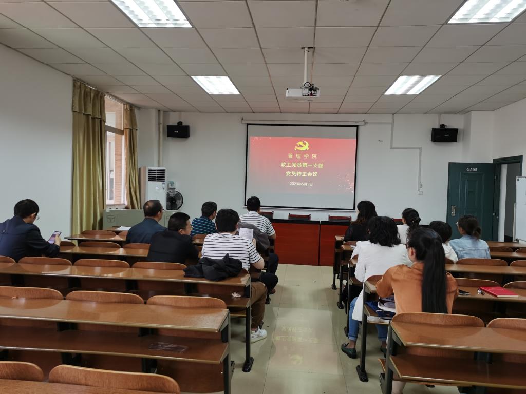 5月9日下午,管理公司教工党员第一支部在G505举行了关于刘有有同志的转正会议,会议由支部书记王超同志主持。