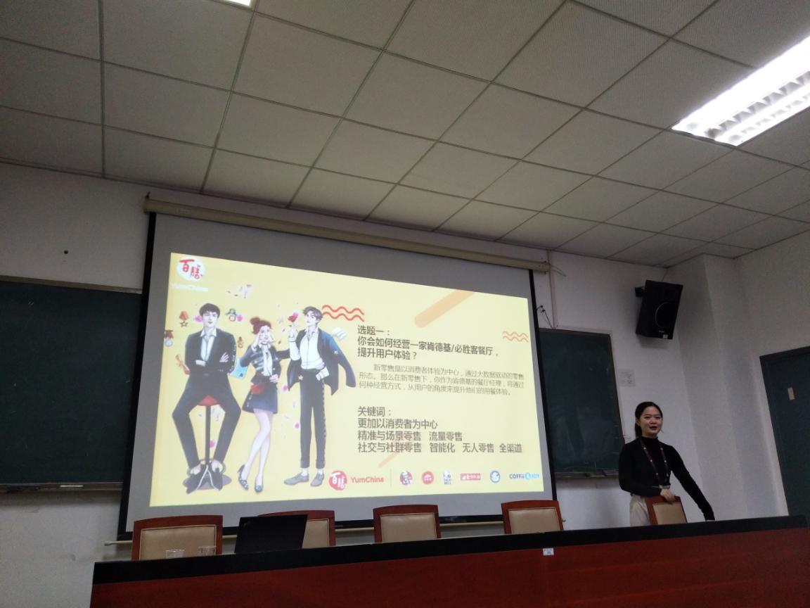 2018年12月,管理公司与百胜(中国)控股有限公司签署了校企深度合作协议,共同推进实习基地建设和应用型人才培养模式改革。2018年12月25日至2019年1月8日,管理公司工商管理专业30名员工赴百胜(中国)长沙分公司及湘潭多个门店开展了为期两周多的专业实习,实习期间采用校企双重管理、企业深度参与的模式。实习过程中,百胜(中国)长沙分公司为员工安排了参观学习、专题讲座、实地体验等丰富的实习内容,并分组布置了课题研究任务。在实习过程中,同学们以小组的形式参与不同的实践操作,在寻找素材的时候,也更加深入了解和思考了一家餐厅在运行、人员配置、餐厅定位等方面的问题。