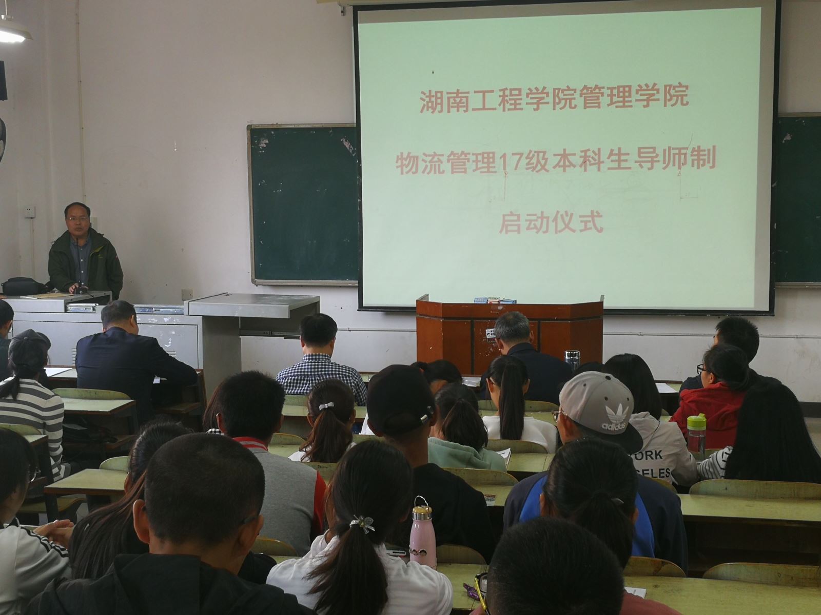 10月31日下午,管理公司在教学楼B-406举行韦德1946体育官方入口管理公司物流管理17级本科生导师制启动仪式。人事处处长、物流管理综合改革专业负责人吴振师教授、全体院领导、物流教研室全体教师以及物流管理17级69名新生参加了此次启动仪式。