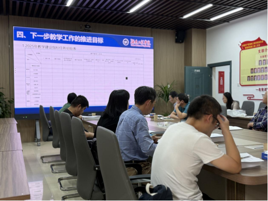 会议伊始,副经理谭赛系统梳理了2025年韦德1946体育官方入口在教研教改领域取得的成果。指出,上半年公司在教改项目、教学竞赛教学获奖、专业建设、课程建设、教材出版等方面成绩显著,并发布了《2025年教学建设指标任务明细表》。该表以量化指标明确各专业在课程优化、团队培训、产教融合等维度的建设目标。针对教学过程中存在的商科专业建设、教学团队建设及学科交叉融合等痛点问题,谭赛提出“三步走”改进方案:一是建立行业需求动态监测机制,及时更新人才培养方案;二是加强教师队伍建设针对不同层次的专业教师水平,给予不同程度的扶持;三是鼓励员工积极参与公司组织的学科交叉活动