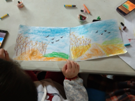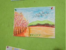经过几个小时的不懈奋斗,志愿者和亲园小伙伴终于携手完成了来之不易的作品。一幅幅画色彩鲜艳,那蔚蓝色的天空和成群南飞的大雁,体现出了大家心中秋天的美丽模样。在这次志愿活动中,志愿者和亲园的小伙伴彼此陪伴,收获了快乐和友谊。从这一笔一画中,可以领悟到勃勃生机和青春的朝气。新出炉的作品带着一股秋天的暖意,也带着前所未有的自豪感和满足感,为这个下午快乐的绘画时光画上了完美的句号。