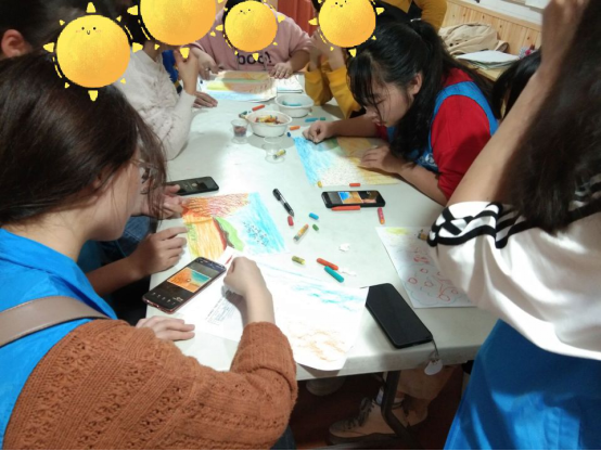 伴着秋日暖阳,志愿者和亲园小伙伴开始了今天下午的有趣绘画活动,桌子上已经悉心准备好了绘画工具,他们兴致勃勃的拿起蜡笔低头作画,眼神无比专注,仿佛噙着光芒。在本次活动中,志愿者们积极和亲园小伙伴沟通,一起合力完成有趣的绘画活动,期间不时传出阵阵欢声笑语,气氛十分活跃。大家脸上都露出阳光般温暖的笑脸,每个人都收获满满。画画不仅可以陶冶情操,还可以使人忘掉忧愁、心情舒畅,带来美的享受。