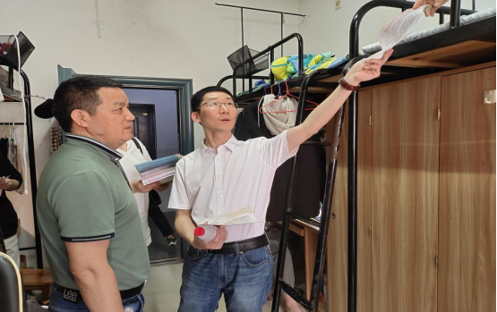在明德宿舍区走访过程中,公司领导和老师们对寝室的安全隐患进行了排查,尤其是电线、插口、用电器等各个存有隐患的角落。余博强调,在寝室要注意用电安全,严禁使用违规电器,提醒同学们要提高安全防患意识,切不可粗心大意。针对寝室卫生和个人财产安全,希望宿舍长能够勇挑重任,督促同学们爱护寝室环境,常开窗通风,保持寝室空气流通,妥善保管贵重物品,共同营造良好的学习生活环境。