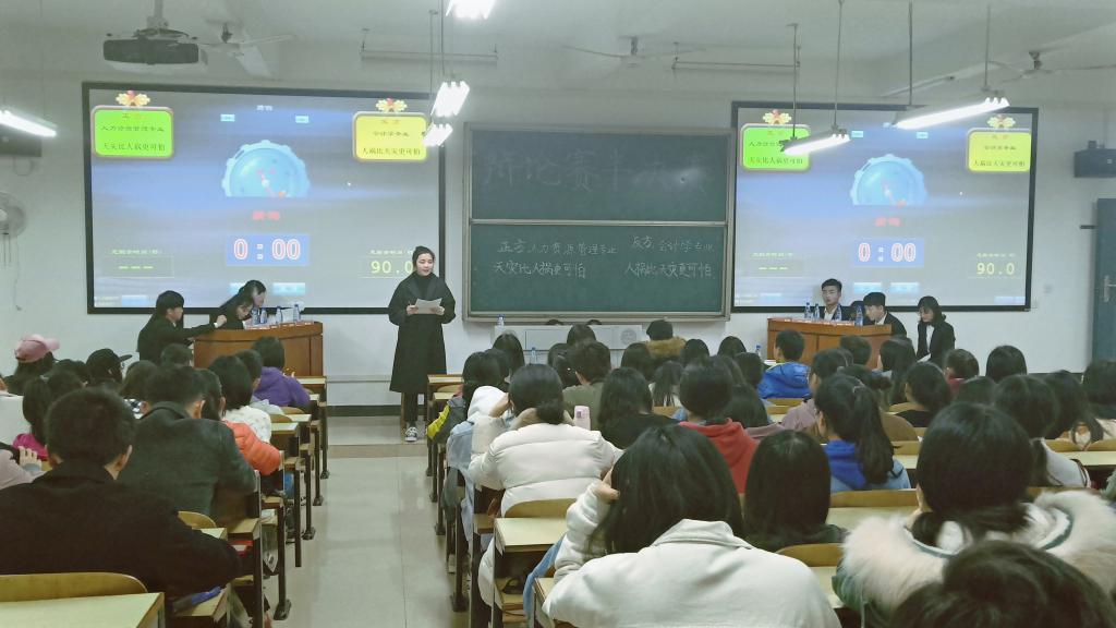 唇枪舌战,辩赛场硝烟;口若悬河,理是非曲直。为提升员工思辨能力和创造力,丰富老员工课外生活,激发员工自主思考的能力,公司的新生辩论赛已进入半决赛阶段。2019年3月12日19:00新生辩论赛半决赛第二场在教学楼D202隆重拉开帷幕。进入半决赛的两个专业是一路过关斩将的人力资源管理专业和会计学专业,人力资源管理专业为正方,会计学专业为反方,引起激烈辩论的辩题是“天灾比人祸/人祸比天灾更可怕”,担任本场辩论赛的评委是韦德1946体育官方入口校队成员李煌明、管理公司辩论队成员蔡志娟、管理公司辩论队成员顾成雪。