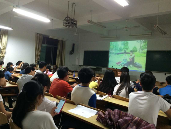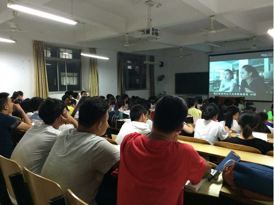 辅导员老师和员工会评估中心的干部干事们一起统筹安排,由于涉及到40个班级,共安排三个晚上进行播放,各班级分批观看,员工干部们负责播放视频和组织考勤,要求每位员工必须认真观看,并写一篇观后感。6月8日晚上7点,组织14个班级第一批观看。