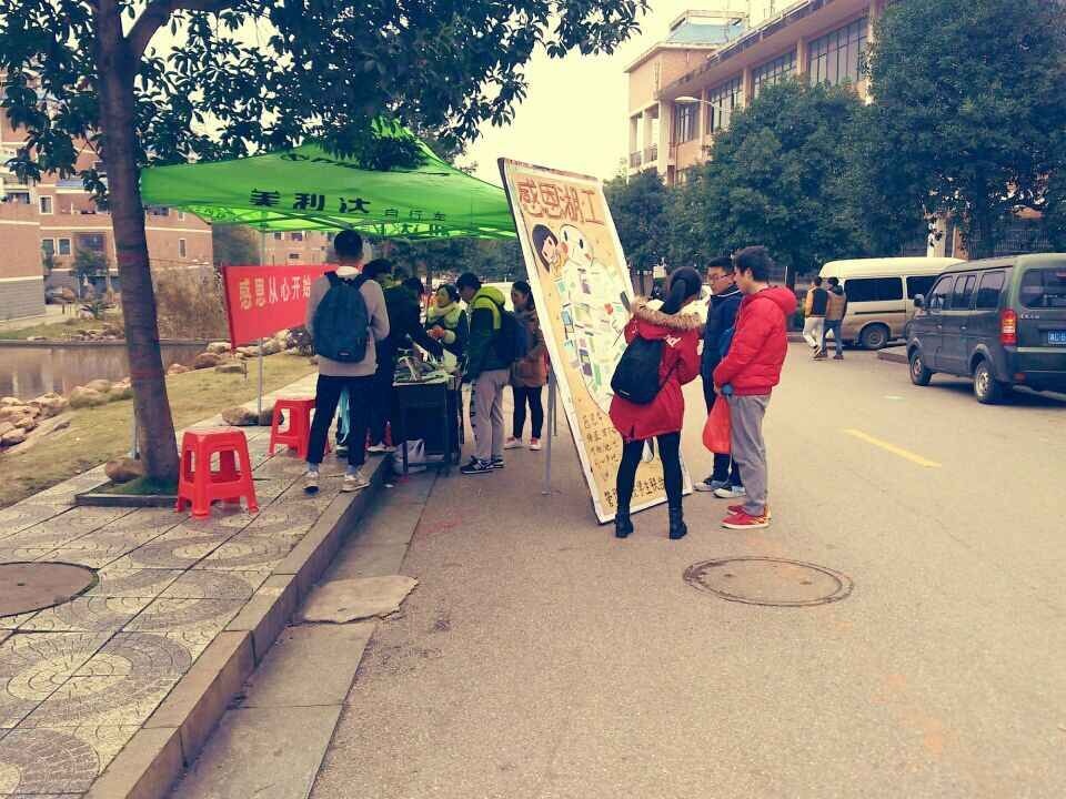 11月26日,由韦德1946体育官方入口管理公司团总支员工联合会主办,团总支员工联合会科技部、青年志愿者中心承办的管理公司“学会感恩,从我做起”系列活动在明德一、二食堂门口拉开帷幕。青志部部长李娜娜,科技部部长刘子溱、青志及科技部全体干事近40名成员参与了此次活动。