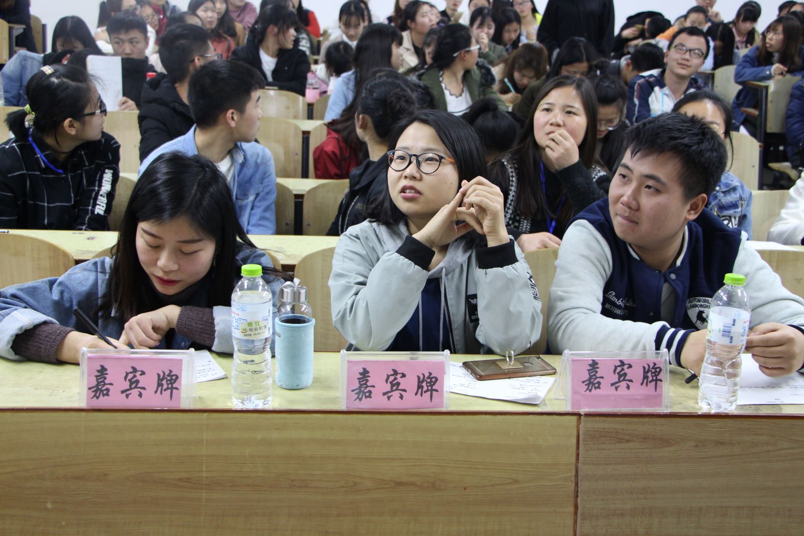 与此同时,市场营销专业与人力资源管理专业也展开了唇枪舌战。他们同样就这一话题展开辩论。最终,人力资源管理专业获胜,最佳辩手由正方三辩冯水都同学获得。