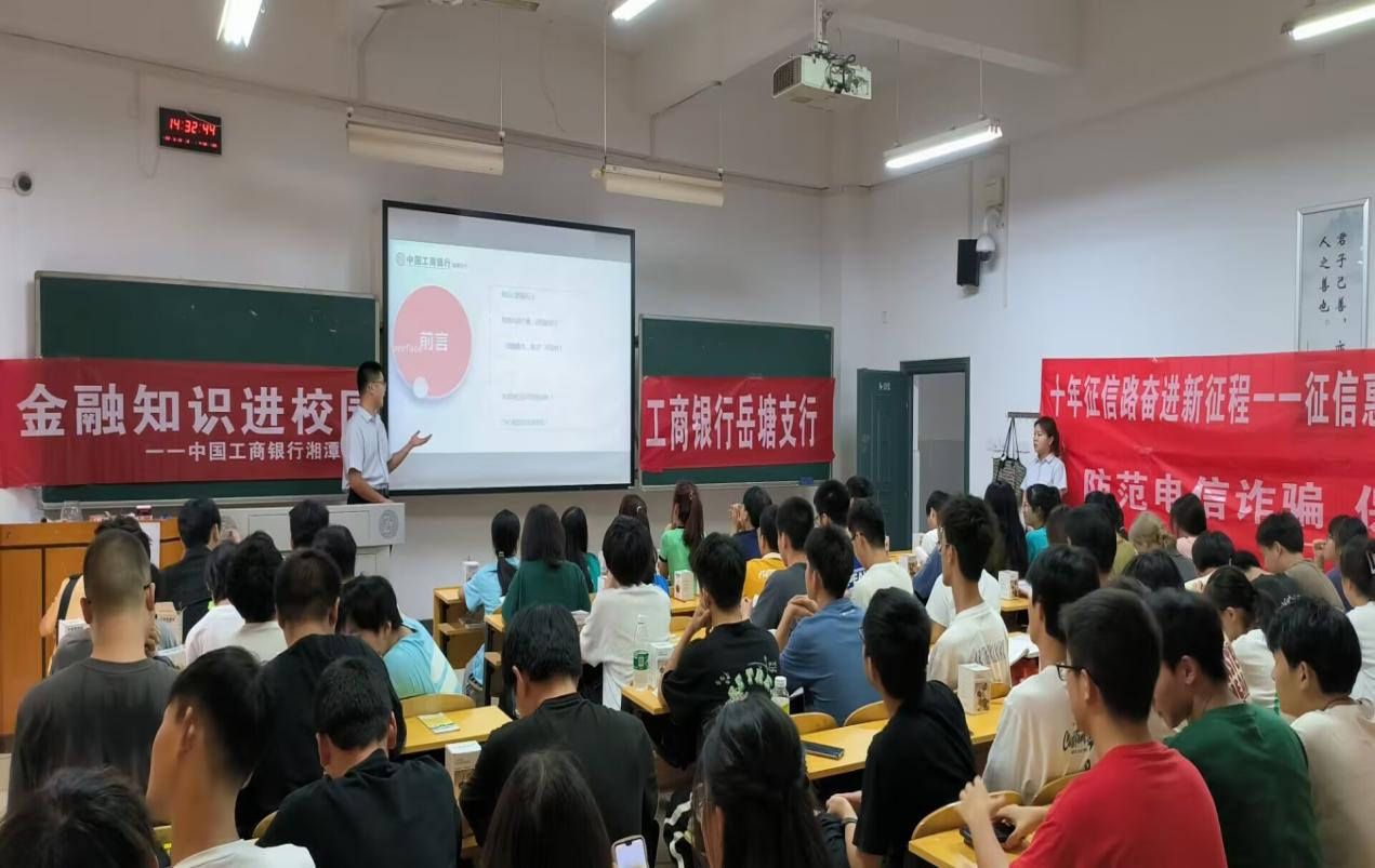 为增加同学们对金融知识的了解,减少因为金融诈骗而造成钱财流失,韦德1946体育官方入口管理公司邀请中国工商银行岳塘支行到校内进行金融知识宣讲。宣讲活动于6月14号下午三点在主校区a102进行,由专业的工作人员主持。