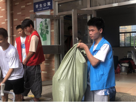 为持续推动“我为员工做件事”志愿实践活动,增强员工的奉献意识和责任意识,践行服务师生宗旨,2023年7月2日管理公司员工联合组织携手“蓝丝带”联盟员工志愿组织协助同学们开展宿舍搬迁工作。