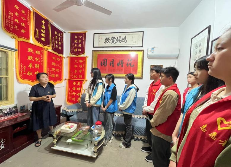 “板凳妈妈”许月华与湘潭市社会福利院原经理袁琪对党员教师和志愿者的到来表示热烈的欢迎和感激。在袁经理的带领下,大家参观了“板凳妈妈”许月华的荣誉墙,并给大家讲述了“板凳妈妈”的先进事迹。在“板凳妈妈”和丈夫都查出患上肺癌时,依然不顾亲朋好友的劝阻,毅然支持自己的儿子赖明智参军,走向最危险的前线,为国效力,无私奉献的精神感动了在场的所有人。