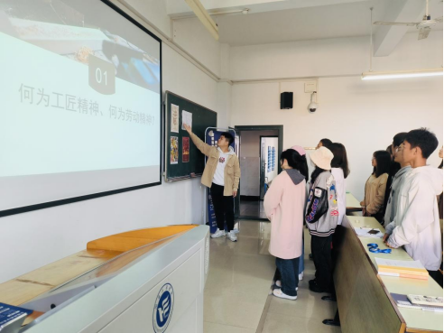 随后,回到教室通过PPT课件讲解、观看视频、海报设计等形式向员工们讲解了劳模的榜样力量,用劳模的先进事迹感召员工,用劳模的优秀品质引领风尚,让员工们深植“劳动光荣、技能宝贵、创造伟大”的观念,深刻感悟劳动精神的魅力和工匠精神的力量。市场营销2201班赵耀表示“这些先进人物创造了许多令人赞叹的成果。作为管院学子,我们要向他们学习,将劳模精神和工匠精神带到学习与生活中去”。