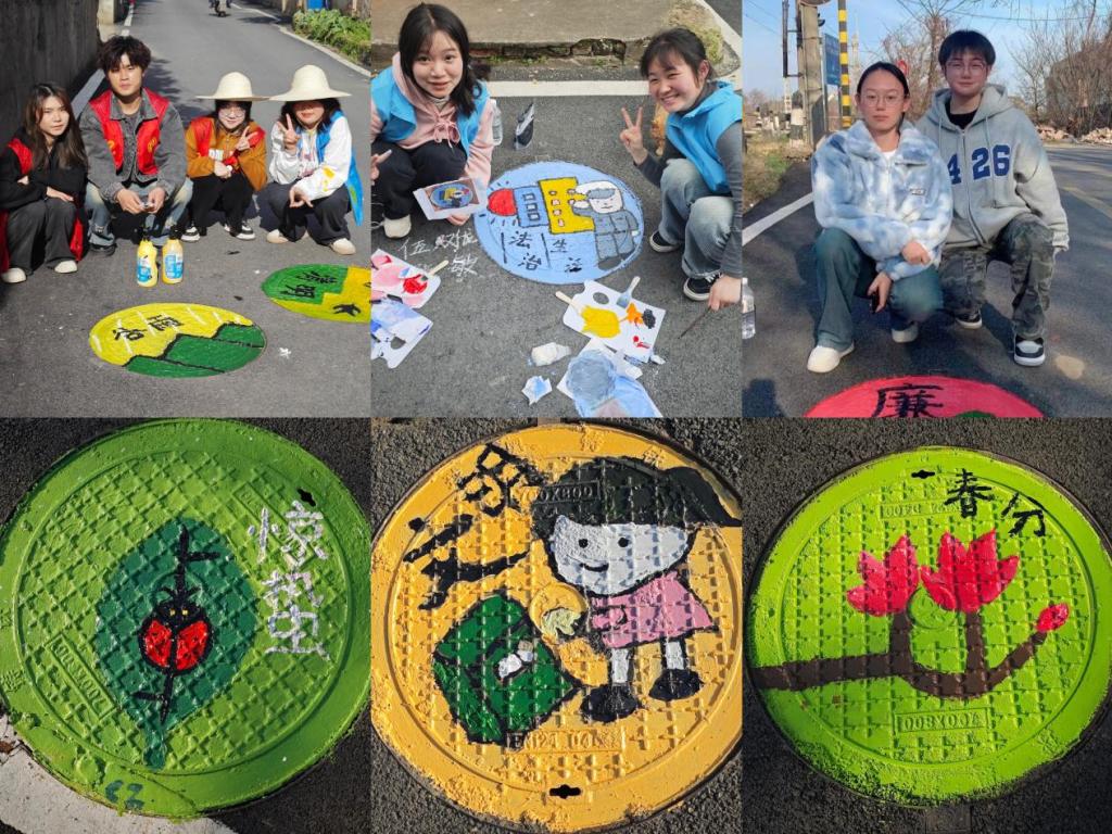 活动中,青年志愿者和员工党员围绕二十四节气、社会主义核心价值观、美丽乡村等主题进行井盖绘制创意设计,在带队老师和村委会工作人员的指导下进行艺术创作。一笔一世界、一笔一风光,经过井盖清洁、线稿勾勒、涂抹色彩等,完成了二十四节气之春季篇、廉洁文化、文明法治等井盖涂鸦作品,为整洁的乡村小路增添了色彩和趣味。“这井盖真漂亮,你们画得真好看!”“我来拍个短视频宣传一下!”“你们还会来吗?这面墙空荡荡的,你们也给画画呀!”村民们如是说。