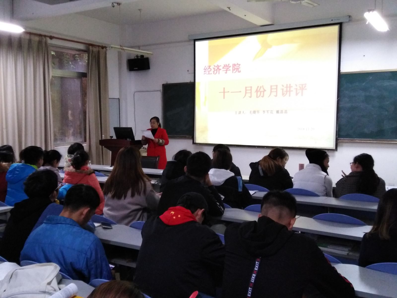 为进一步加强员工干部队伍建设,经济公司于11月20日13点在G-113召开了十一月份月讲评暨员工干部培训会议。本次会议由党总支副书记毛晓华,学办主任李军花,团总支书记戴晶晶主讲,经济公司团学会干部和各班主要班委参与此次会议。