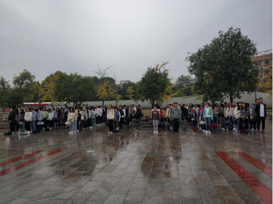 2020年10月26日上午7:00,经济公司在知行广场举行升旗仪式,党总支副书记曾贵、副经理卢时光、学办主任戴晶晶、辅导员李军花出席活动。参加本次活动的有经济公司大一大二员工、团学会干部和全体员工党员。金融工程2002班陈凯文同学主持本次升旗仪式。