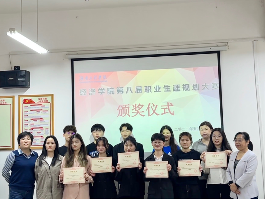 2022年5月16日12:40,经济公司在G-115会议室举办了第八届职业生涯规划大赛。经济公司党总支副书记卢时光老师、经济公司学办主任戴晶晶老师、经济公司辅导员李军花老师、经济公司刘佳馨老师、管理公司包海燕老师出席并担任评委,2020级共十名同学参加了本次比赛。
