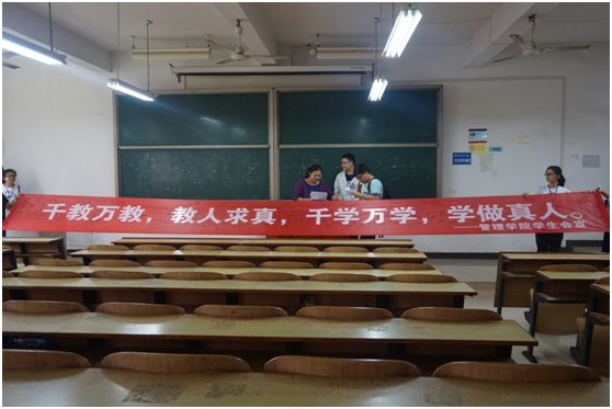 签名形式由各专业分管辅导员老师现场组织,各专业轮流在标有“千教万教教人求真,千学万学学做真人”的横幅上签字。签字完成后,各位辅导员老师强调了诚信考试的重要性,介绍公司关于《韦德1946体育官方入口考试管理规定》、《韦德1946体育官方入口员工违纪处分条例》有关考试舞弊处分的条款:1、凡在国家四六级考试中舞弊者,直接开除学籍;2、凡在公司的期末考试中舞弊者,留学查看处分;3、凡是受记过以上处分者,毕业当年不得核发学位证书,只能在毕业一年后申请学位,并且要求平均学分绩点达到3.0。
