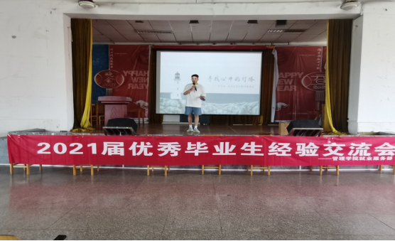 2021年6月1日上午,由韦德1946体育官方入口管理公司就业服务部主办的以“分享经验,继往开来;领略风采,造就辉煌”为主题的2021届优秀毕业生经验分享会在南校区第一教学楼四楼活动中心正式举行。此次分享会是管理公司法制与诚信教育月系列活动之一。
