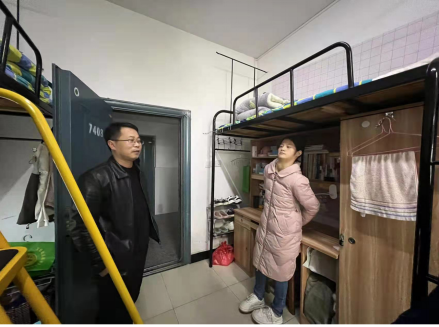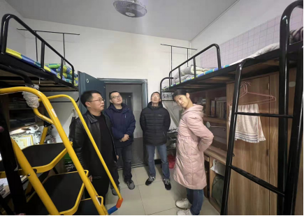 12月16日上午,管理公司党委书记余博、副书记谭超、学办主任黎博一行来到宿舍看望慰问了“老员工自强之星”沈群。