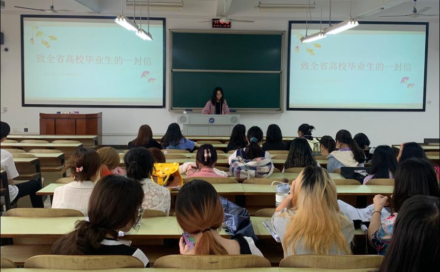 5月30日,管理公司组织18级各班同学阅读《湖南省员工资助管理中心致全省高校毕业生的一封信》。