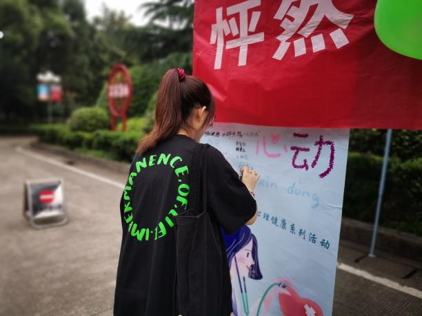 活动在新校区和南校区分别开设宣传站点进行线下宣传,用泡泡机制造泡泡吸引注意,团总支员工联合会心理部干事们在现场进行详细介绍与解说扩大了活动宣传力度,带动大量同学在主题海报签名以及进行有奖问答活动,提高了员工的活动积极性。
