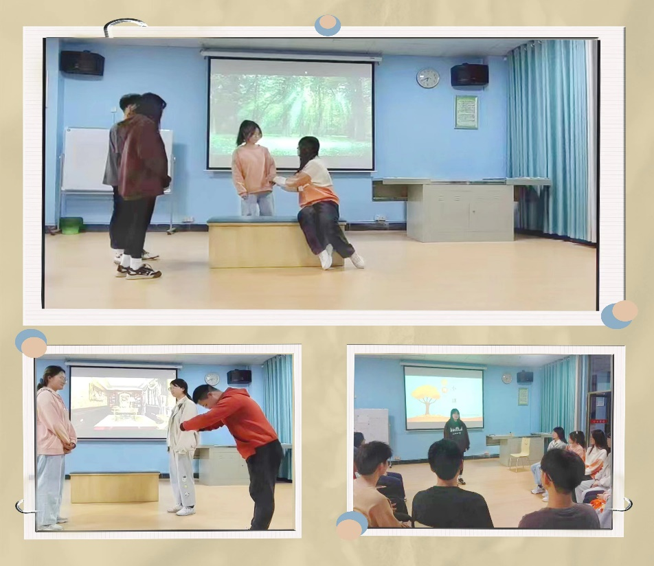 本次活动围绕“沟通心灵,拓宽人际”主题,以情节剧本排演的形式展开。活动伊始,罗蒙老师对本次心理沙龙活动的意义及相关内容进行简要介绍,剧本的演绎是一次人际合作的良好体验,而真诚的合作可以丰富彼此的心智,罗蒙老师希望同学们能够通过肢体更好地演绎角色,表达自己。活动中,同学们积极进行剧本内容讨论,认真分析角色,探索角色的内心活动。排演中的每一次调整都是同学们对角色更完整的理解,也是对角色中“我”的认知改变。在演绎过程中,同学们专注每一个角色的当下,通过动作、表情、言语等将角色进行诠释。活动结束后,同学主动分享活动体验,本次活动在欢快而温暖的现场气氛下圆满结束。