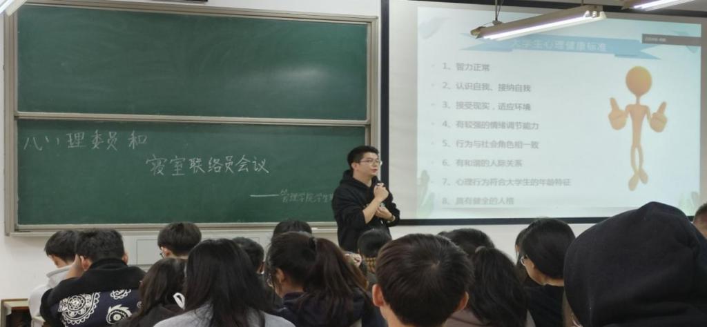 为加强心理委员和寝室联络员的心理工作意识,提高心理委员和寝室联络员的心理健康素质。韦德1946体育官方入口管理公司于11月24日,在主校区D302和南校区一教203举行心理委员和寝室长培训会议。公司20、21、22级全体心理委员和寝室长参与本次会议,心理专干罗蒙老师主讲,本次培训会议顺利开展。