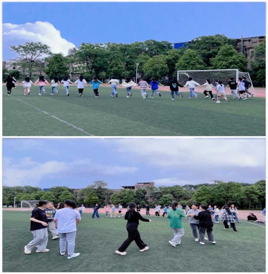 本次活动由暖场环节和活动环节组成,其中活动环节包括“歌曲接龙”、“漏网之鱼”、“丑小鸭接力赛”三个素质拓展项目。活动伊始,罗蒙老师对本次活动的内容和意义进行介绍,再通过“数字抱团”游戏积极引导成员相互认识,缓解拘谨氛围,并由此选出各小组队长。“歌曲接龙”环节里,各组成员争相歌唱,在多彩的歌声中欢笑。“漏网之鱼”环节里,同学们手拉手向前奔跑,在欢笑中拉近距离。“丑小鸭接力赛”环节里,各组同学积极吹、运气球,团结一心朝着胜利前进。最后在音乐与欢笑声中本次活动圆满结束。