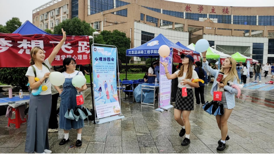 此次心理游园会活动包括“蒙眼画图”、“看字说颜色”、“梦想飞跃”等多个游戏环节。在管理公司员工联合组织心理部承办的"梦想飞跃"游戏中,同学们兴致盎然,有序排队参与。参与游戏的同学吹一个气球,并在气球上写下自己的心愿,从起点开始用手拍打气球在气球不落地的情况下运送到终点便视为成功。“梦想飞跃”游戏不仅考验同学们的专注力,更考验同学们的耐心和心态,让同学们在享受当下的的同时懂得坚持的意义。在活动中,同学们活跃于各个游戏环节,在竞争与合作中逐渐拉近彼此的距离,现场反响热烈。