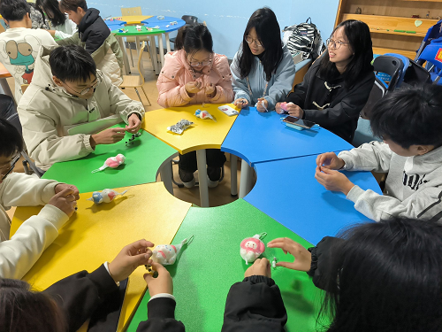 活动伊始,同学们观看了心理健康视频《认识情绪》,随后通过手工扭扭棒DIY情绪表情并分享,深化了对不同情绪的理解。“树洞悄悄话”环节中,大家写下烦心事投入纸箱,抽取他人烦恼并提供建议,最终以手串珠子编织手串,寓意抛弃烦恼。“情绪猜猜猜”活动让同学们在表演与猜测中增强对情绪的感知。在“情绪调节”环节,参与者分享自身调节情绪的方法,设定目标,抽取他人便签给予鼓励支持,传递积极能量。最后,同学们绘制情绪拨浪鼓,展示作品并讲述故事,引发情感共鸣。