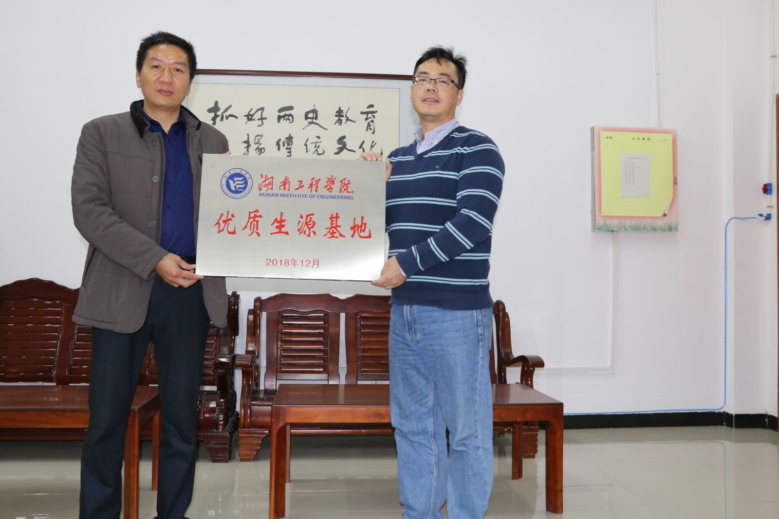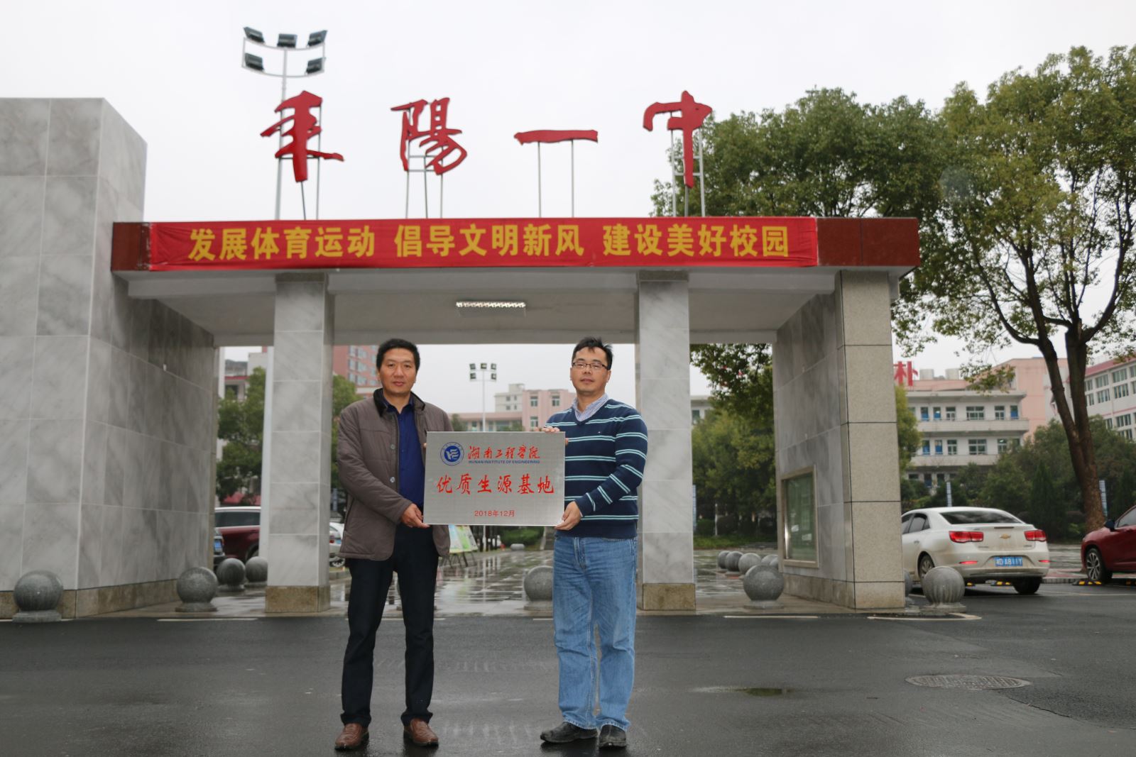 12月7日上午,管理公司受招生与就业指导处委托,前往公司友好联系高中耒阳市第一中学举行“优质生源基地”挂牌仪式。耒阳市第一中学董事长曹飞跃、副董事长陈洪斌和办公室主任段永友代表校方接收授牌。