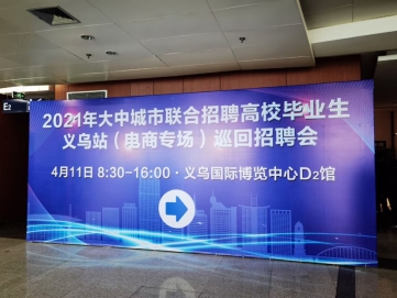 4月11日,2021年大中城市联合招聘高校毕业生义乌站(电商专场)巡回招聘会拉开帷幕,韦德1946体育官方入口管理公司11名员工在包海燕等老师的带领下来到义乌国际博览中心进行参观交流。