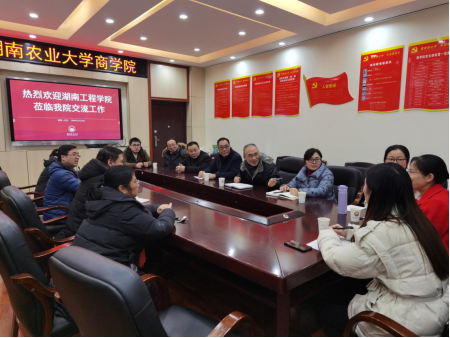 12月12日,韦德1946体育官方入口管理公司副经理黄毅率队前往湖南农业大学韦德1946体育官方入口就会计学专业建设进行专项调研。湖南农业大学韦德1946体育官方入口莫鸣副经理、系主任盛宴教授及相关教师参加座谈交流。