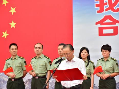 升旗完毕后全体新生在校艺术团的带领下齐唱《我的祖国》,悠扬流畅的乐曲谱写新中国的大好河山,饱含深情的歌声赞颂新时代的光明前途。全体新生挥舞着手中的小国旗,豪情满怀,歌声嘹亮,共同祝福我们伟大的祖国更加繁荣富强。